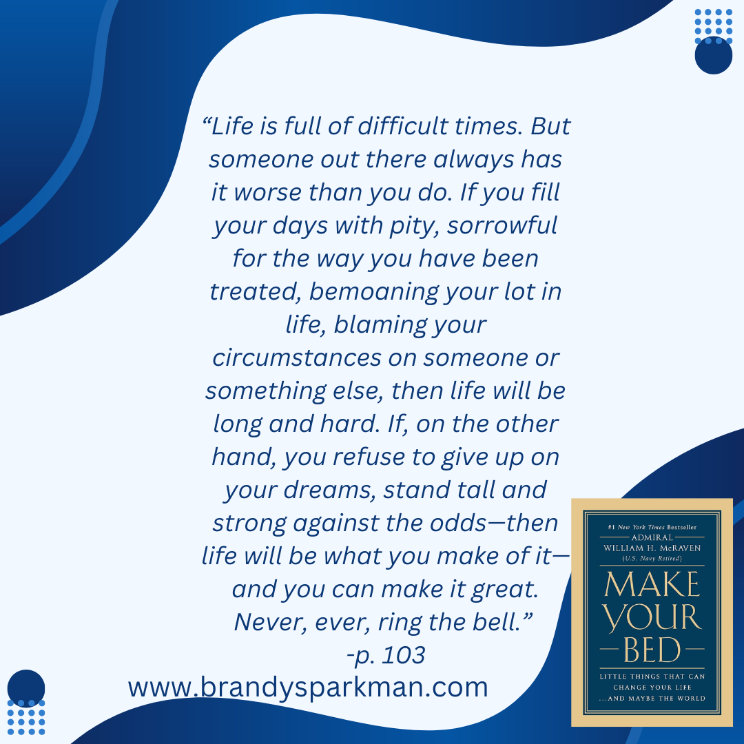 "Make Your Bed: Little Things That Can Change Your Life...And Maybe the World" by Admiral William H. McRaven is a motivational book that distills the life lessons he learned during his Navy SEAL training into practical advice for personal and professional success. The book is structured around ten key lessons, each drawn from his experiences in the military. These lessons emphasize the importance of discipline, perseverance, and taking responsibility for one's actions. The advice—making your bed every morning—symbolizes the idea that small, consistent actions can lead to significant positive changes in life. McRaven encourages readers to embrace challenges, face adversity with determination, and always strive to make a difference in the world, no matter how small the initial step.