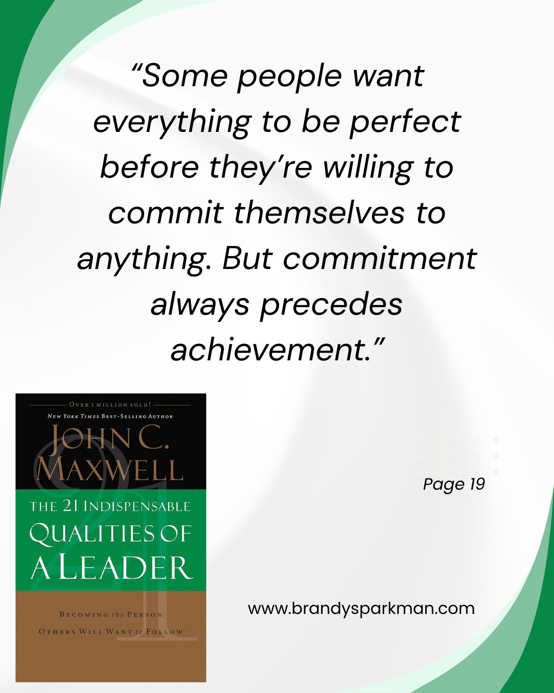 Commitment turns intentions into impact. Leaders don’t wait until it’s convenient; they stay dedicated even when it’s difficult.